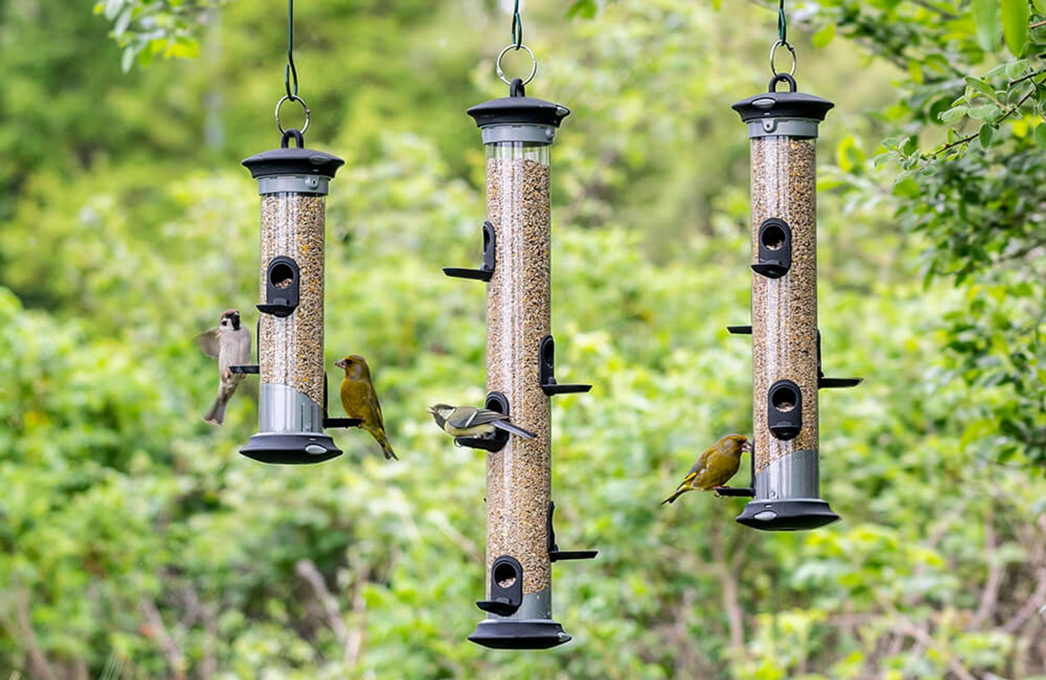 Det fine med stolpesystemene er at de kan brukes til å kombinere ulike fôringssystemer. Dette gir hagefuglene et utvalg av ulike typer mat og får dem til å komme tilbake!